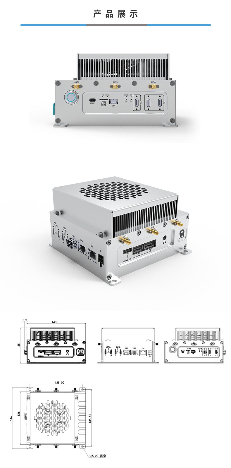 • 产品描述:飞云智盒RTSS-X407是一款由瑞泰新时代推出的高性能边缘计算产品。其核心搭载NVIDIA Jetson Thor 5000模组,提供高达2070 TFLOPS(FP4 - Sparse Computing Power)的强劲AI算力,专为苛刻的工业应用场景设计。产品具备良好的连接性与扩展能力,集成6路USB、万兆网、光纤、4路CAN/CANFD及12路GMSL相机等丰富接口,并支持Gen5 NVMe硬盘。采用紧凑型设计,支持宽压供电(9-28V)并拥有-40℃至60℃的宽温工作能力(功耗140W),确保了工业级的可靠性与耐用性。飞云智盒RTSS-X407是人形机器人、驱动智能制造、智慧物流、特种作业、智慧医疗及科研教育等领域智能化升级的理想硬件平台。