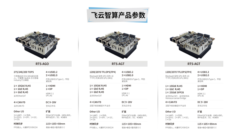 瑞泰飞云智算RTS-AGO/AGT是面向人形机器人的Jetson具身智能“大脑”,具备多档算力、已量产、可规模交付,能快速完成人形机器人产品集成与量产落地。