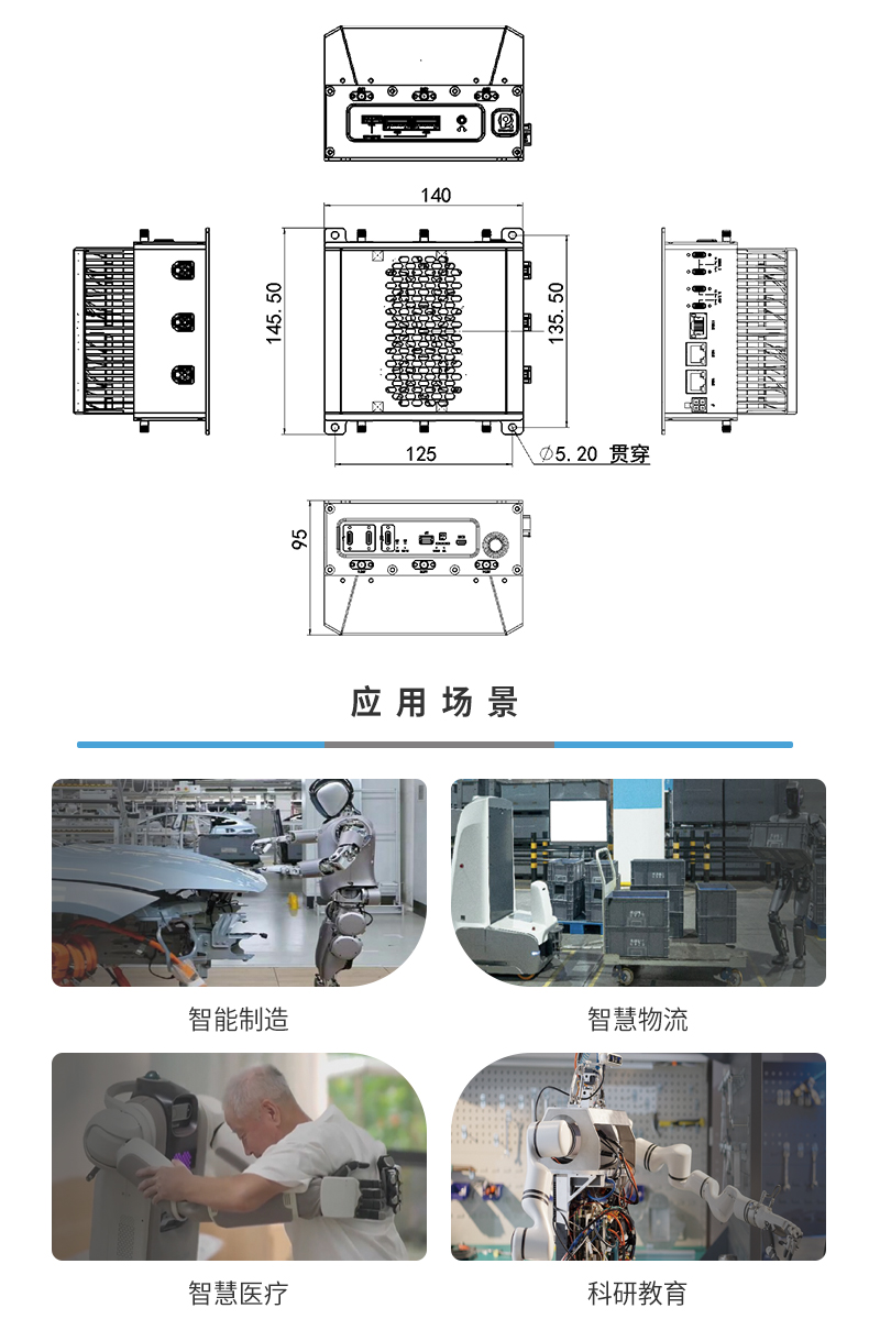 • 产品描述:飞云智盒 RTSS-X406 是一款面向人形机器人与低延时具身智能系统的工业级边缘计算平台,基于 NVIDIA Jetson Thor T5000/T4000,最 高提供 2070 TFLOPS 的 AI 推理算力,支持大型Transformer 与具身智能模型的本地实时运行。RTSS-X406 兼顾高算力、实时性、可拓展性、大容量存储与可靠性设计,是复杂智能系统的高性能计算平台。