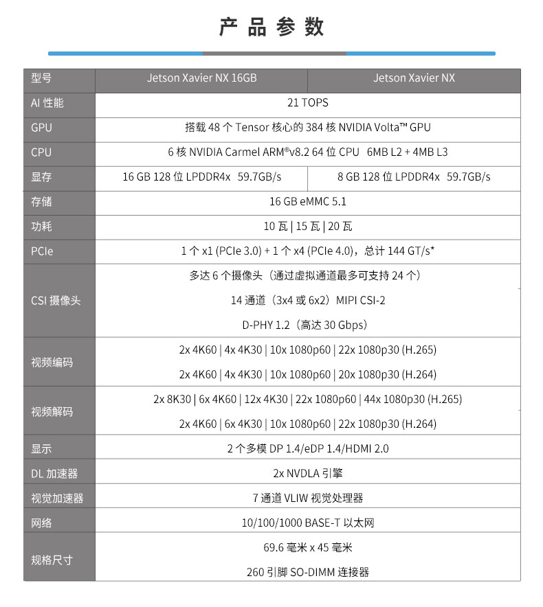 • Jetson Xavier NX模块
