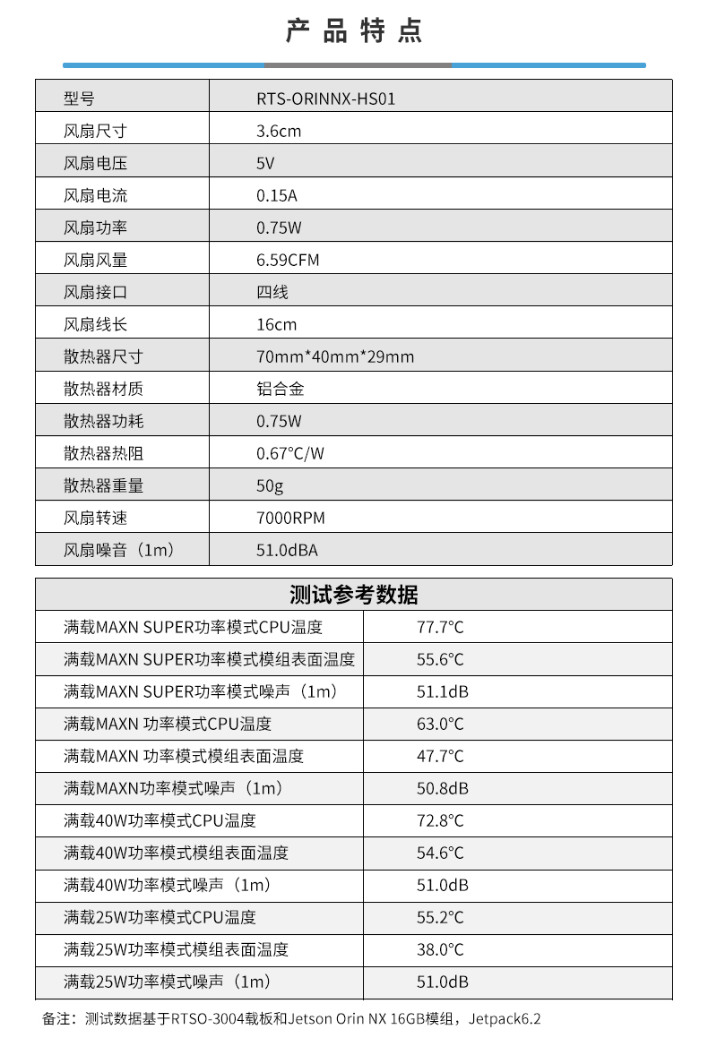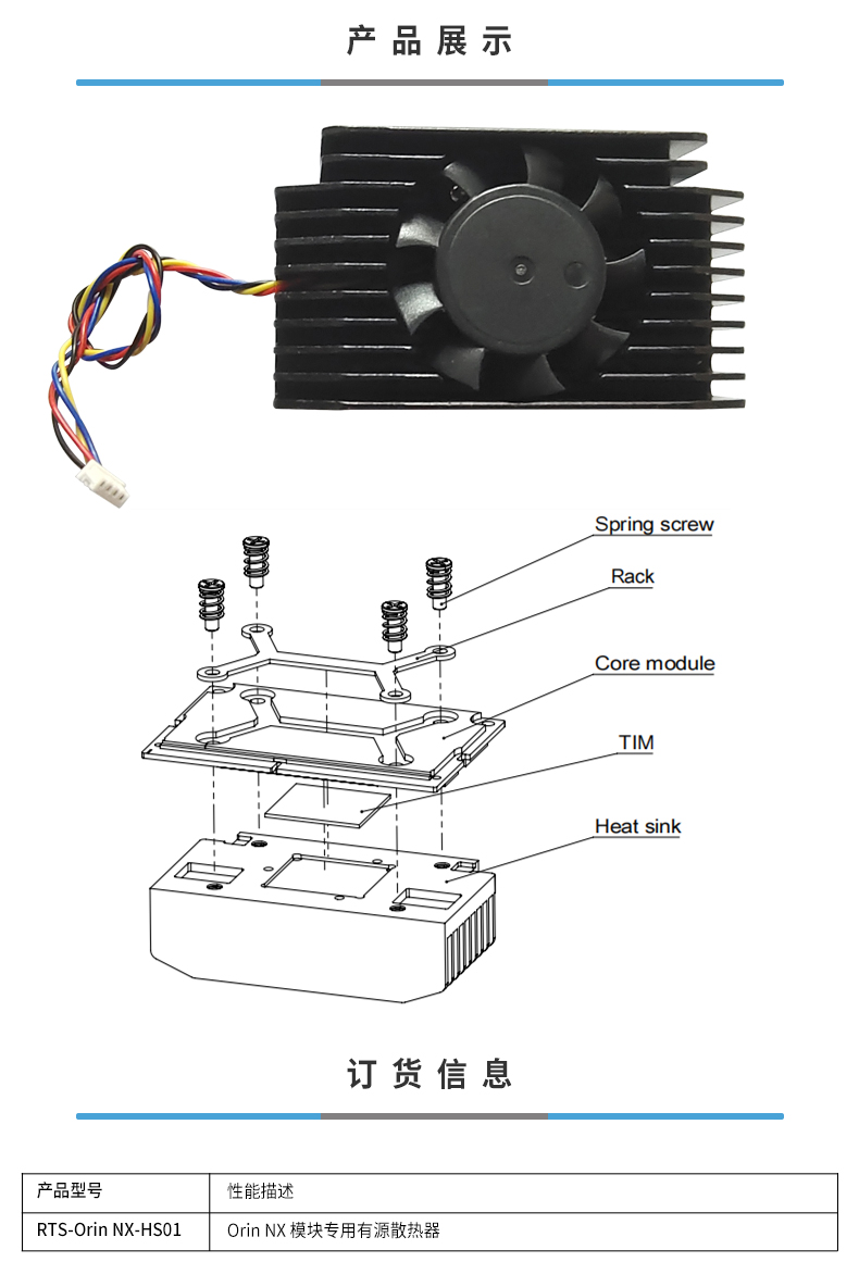 • Orin NX模块专用有源散热器