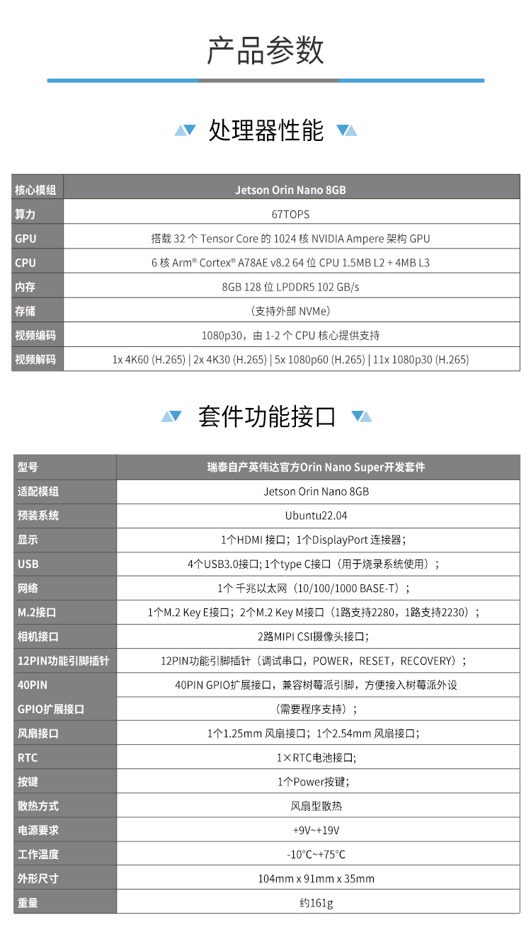• 瑞泰自产英伟达官方Orin Nano Super开发套件