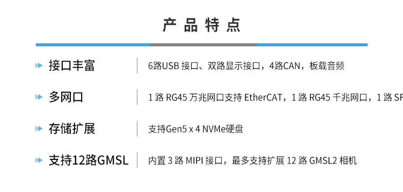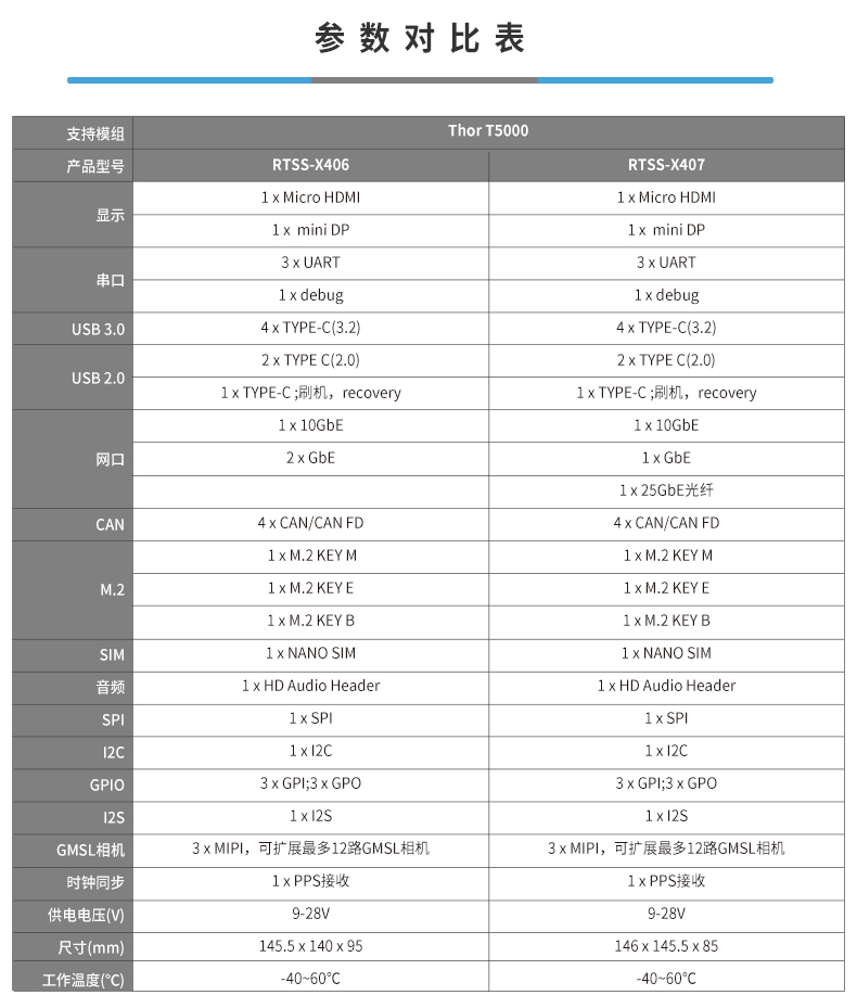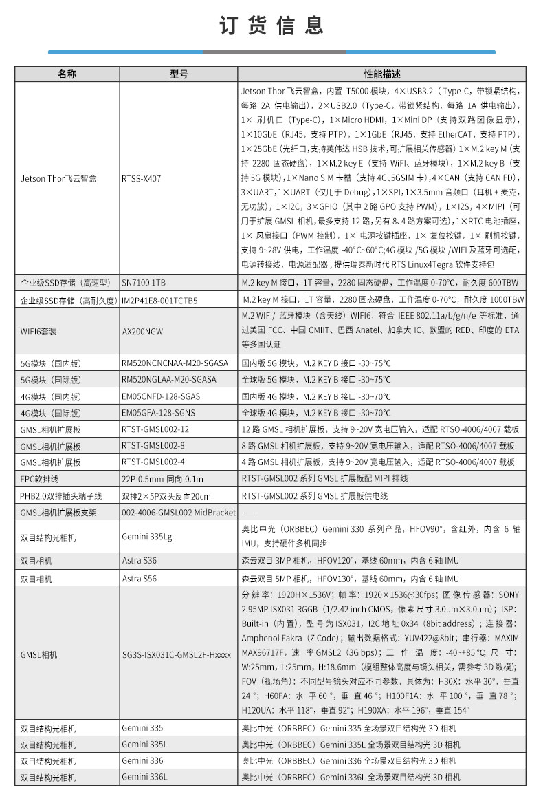 • 产品描述:飞云智盒RTSS-X407是一款由瑞泰新时代推出的高性能边缘计算产品。其核心搭载NVIDIA Jetson Thor 5000模组,提供高达2070 TFLOPS(FP4 - Sparse Computing Power)的强劲AI算力,专为苛刻的工业应用场景设计。产品具备良好的连接性与扩展能力,集成6路USB、万兆网、光纤、4路CAN/CANFD及12路GMSL相机等丰富接口,并支持Gen5 NVMe硬盘。采用紧凑型设计,支持宽压供电(9-28V)并拥有-40℃至60℃的宽温工作能力(功耗140W),确保了工业级的可靠性与耐用性。飞云智盒RTSS-X407是人形机器人、驱动智能制造、智慧物流、特种作业、智慧医疗及科研教育等领域智能化升级的理想硬件平台。
